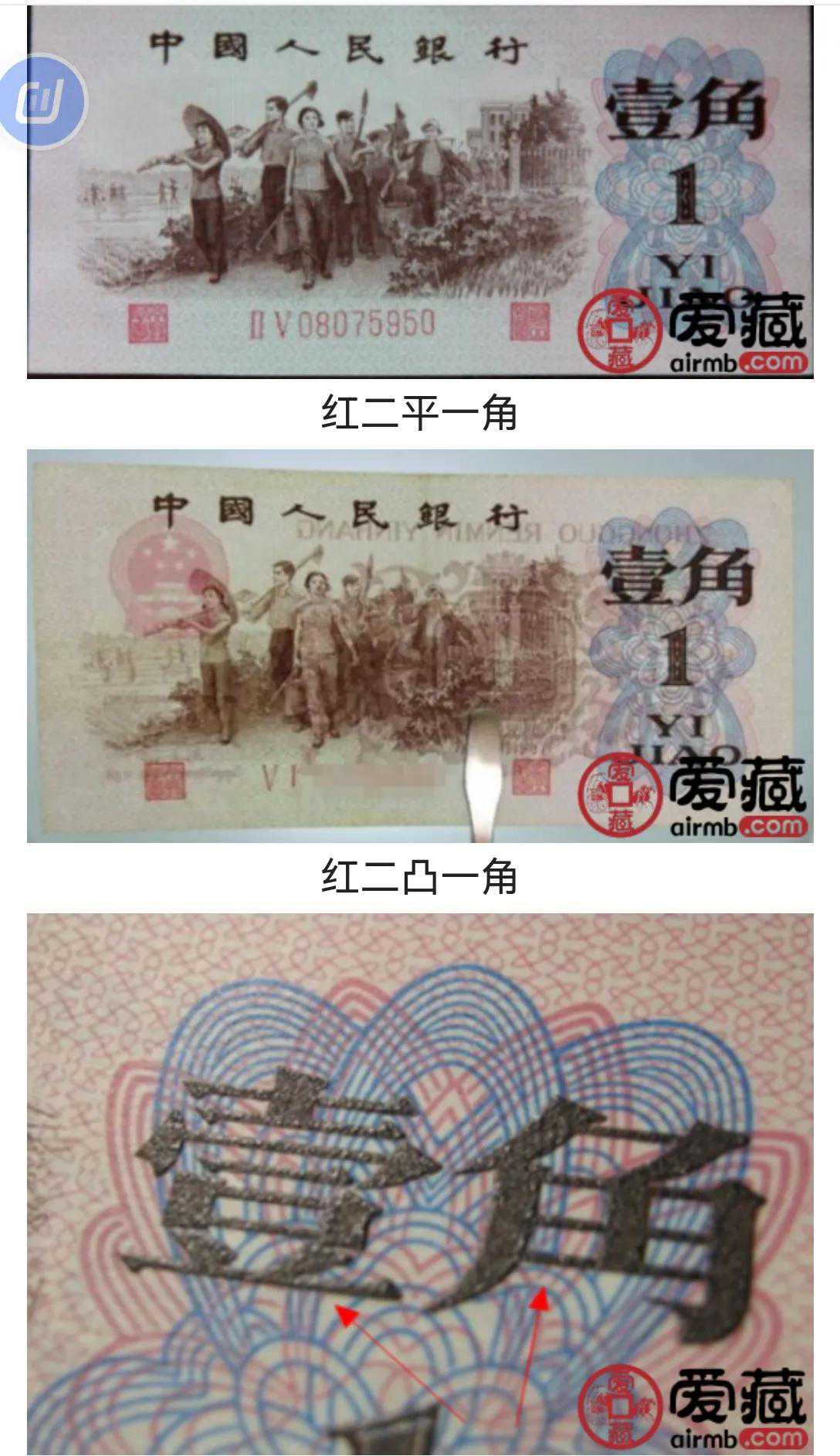 红二平一角纸币比较难分辨的就是红二凸一角,很多人分辨不出来,就目前的行情来看,红二平一角的市场价格和红二凸一角价格不分上下的,因此大家收藏的时候要注意分辨,怎么分辨来看下面: