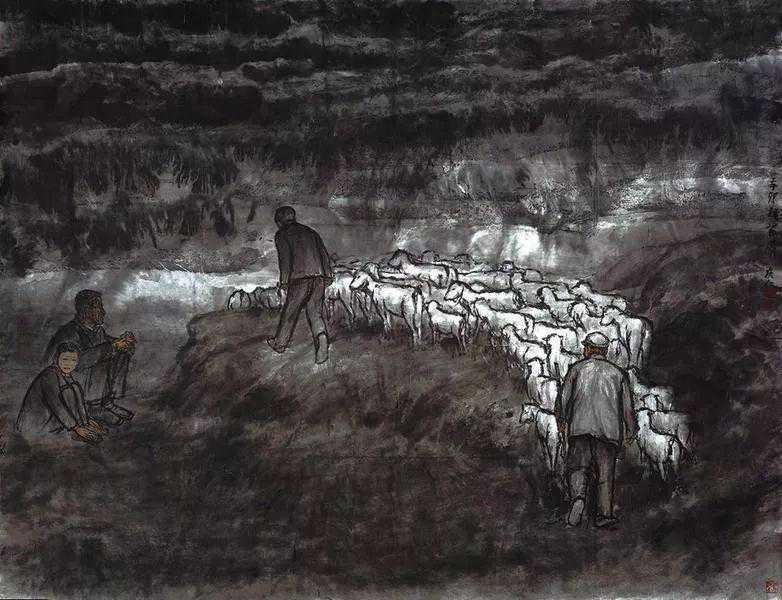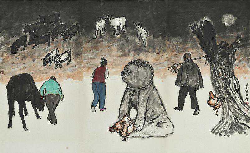 先有非凡艺术,才有非凡艺术家。也许,从《回忆》开始,先生已然在刻意寻求正确处理叙事与写意之间尖锐矛盾的最佳方案——以人物的不相关联将叙事变得虚设起来。这样的创作手法在他后期的作品创作中愈发体现得一览无余。从人们所谓的乡情、乡梦到人们所认可的表现主义、魔幻现实主义、新写意主义,他始终通过绘画的手段重塑自己的精神世界,在笔墨氤氲中以诗意栖息的方式去追求灵魂的寄托和精神的供养。一本《画谈》《画论》,就足以使他洒脱从容,天真率性进入到自己的创作境界。