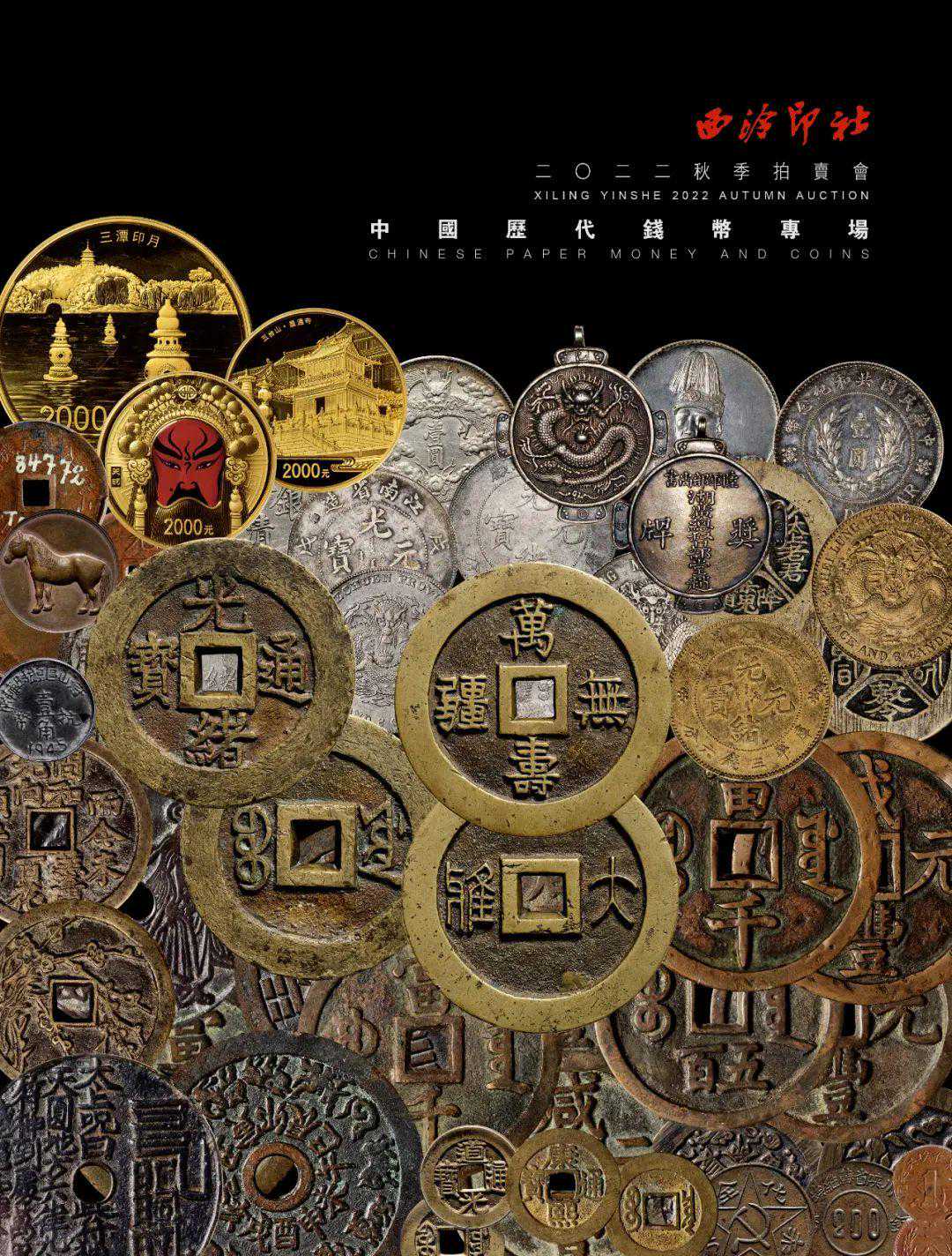 2022西泠秋拍历代钱币专场,精彩纷呈,名品荟萃,涵盖古钱币、金银锭、机制币、纸币、纪念币等。
