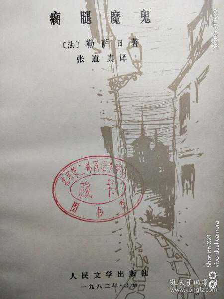 2017年的一个冬日,我在孔夫子旧书网上闲浏览,突然眼前一亮,发现了这本书,经过比对立即选订了一本品相好,价格合适的《瘸腿魔鬼》。时间不长,书就寄到,包装严密细致,拆包,粗略翻阅,品相与实物相符,立即给孔网进行回复。