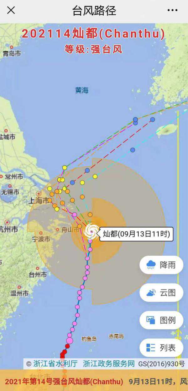 今年第14号台风“灿都”(强台风级)13日11时中心距离宁波偏东方向约196公里,29.9°N,123.6°E,14级(45米/秒),950百帕。预计,其将以每小时15公里左右的速度向北偏西方向移动,强度缓慢减弱。