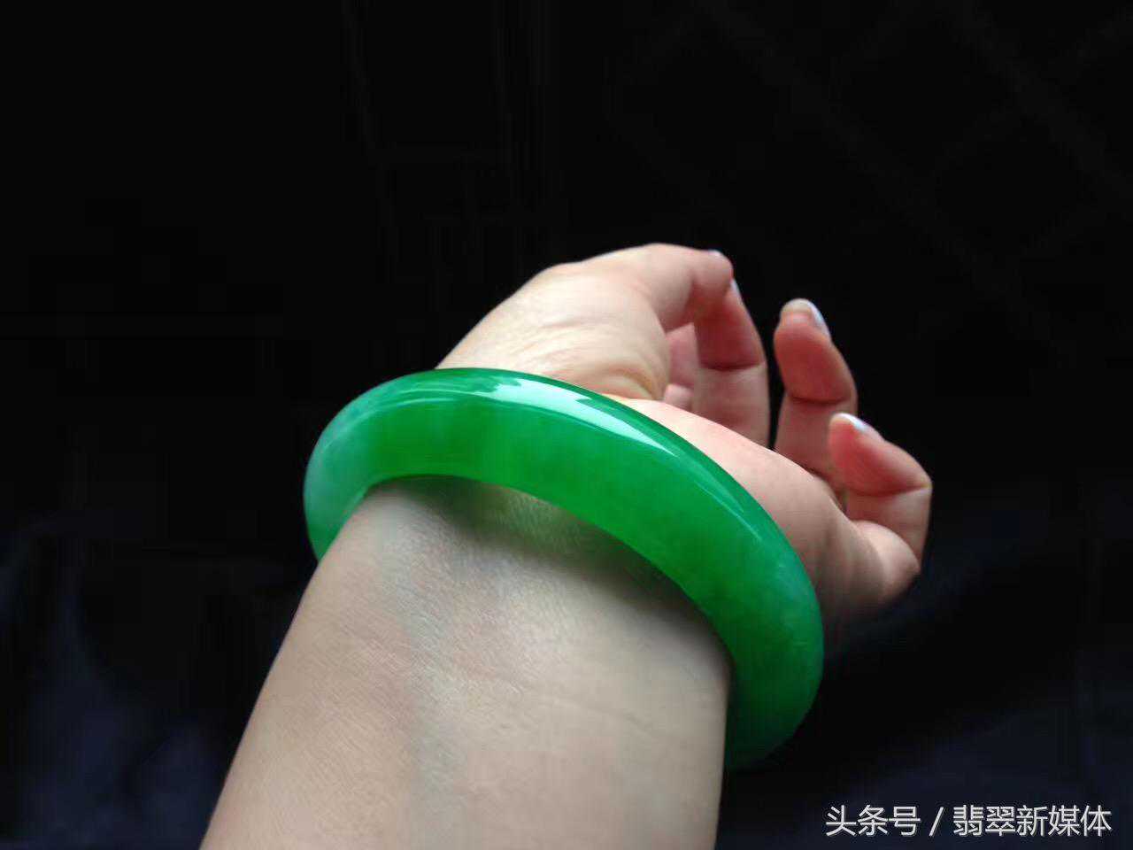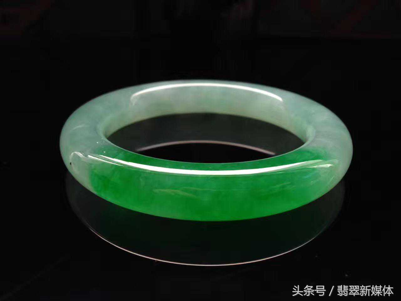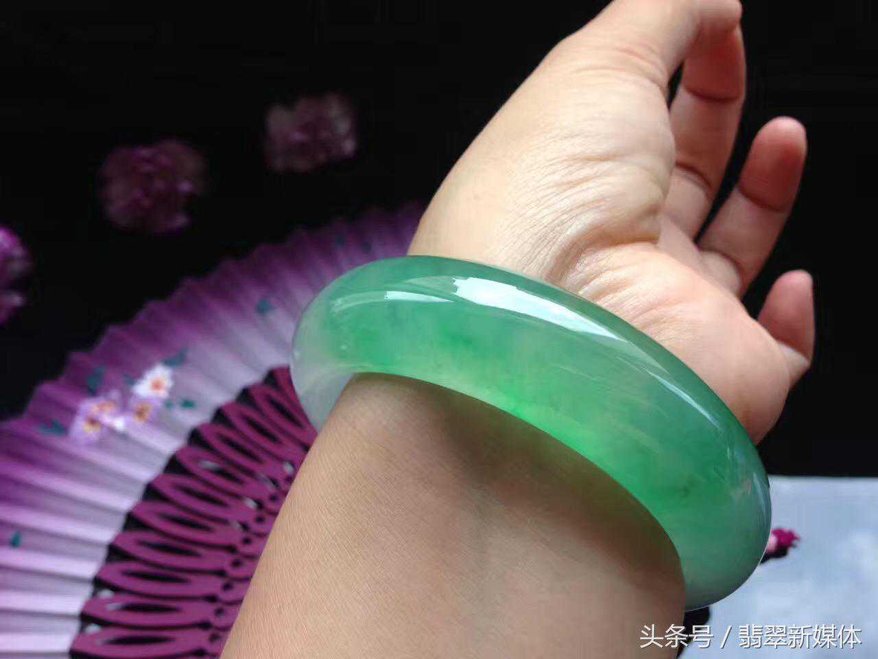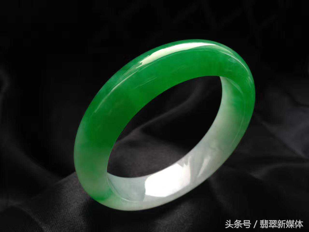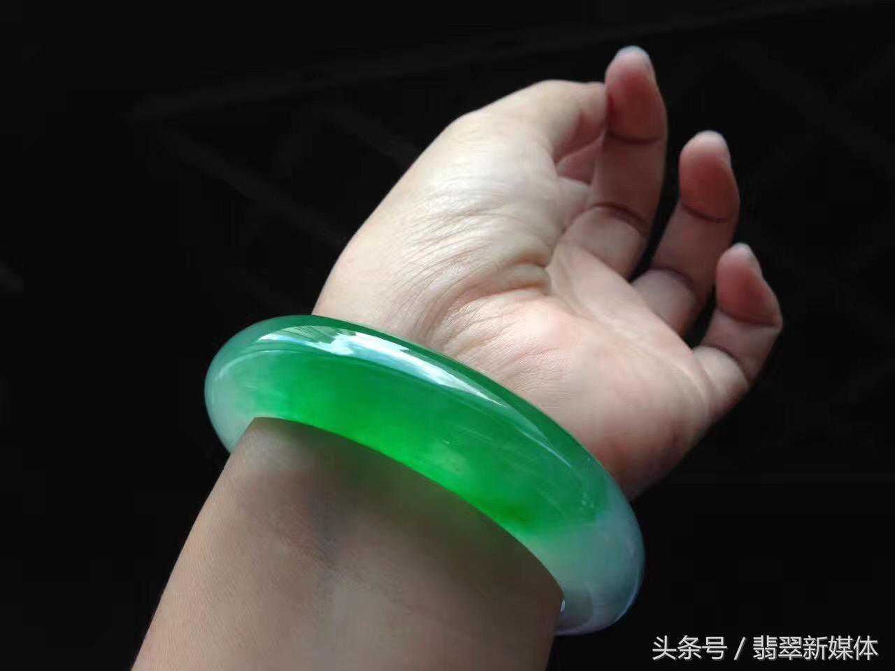由上可知,百万级以上的翡翠手镯,种质细腻,大多是冰底或玻璃底,带上满圈或者一部分绿色几乎是标配,且色泽必须鲜亮。