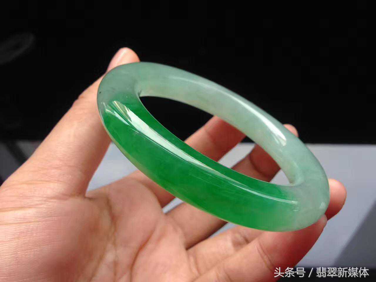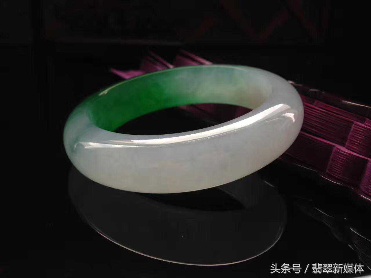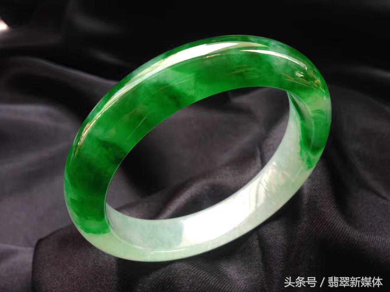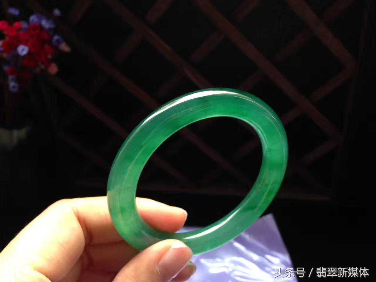 由上可知,百万级以上的翡翠手镯,种质细腻,大多是冰底或玻璃底,带上满圈或者一部分绿色几乎是标配,且色泽必须鲜亮。