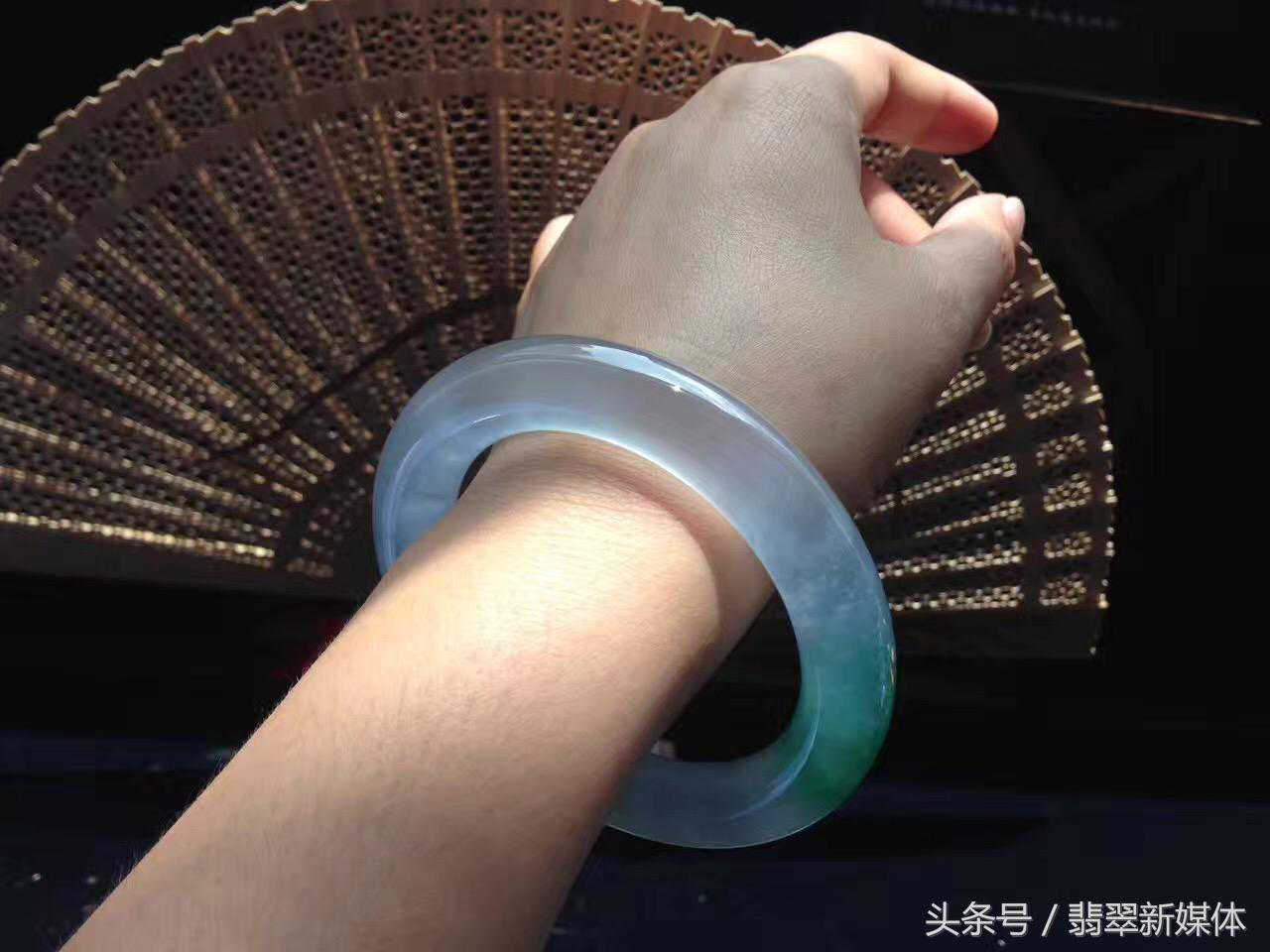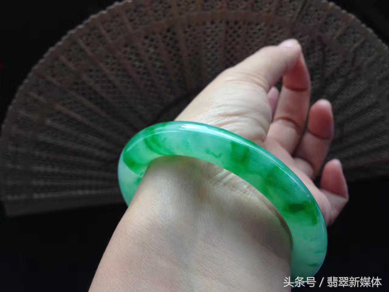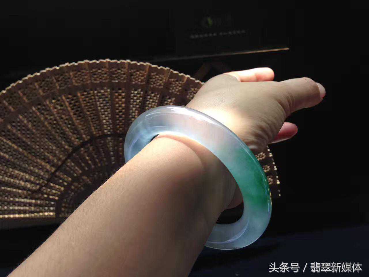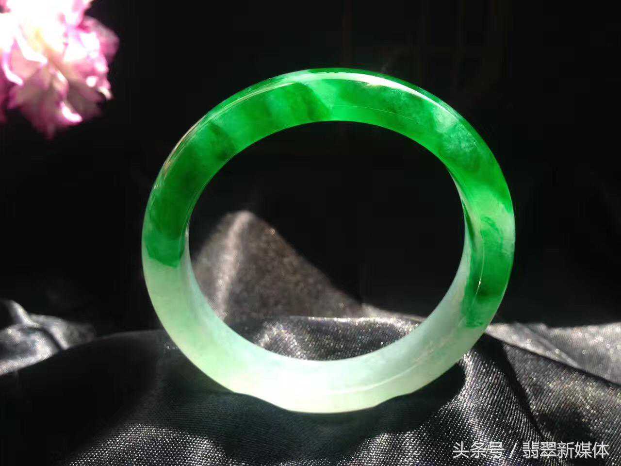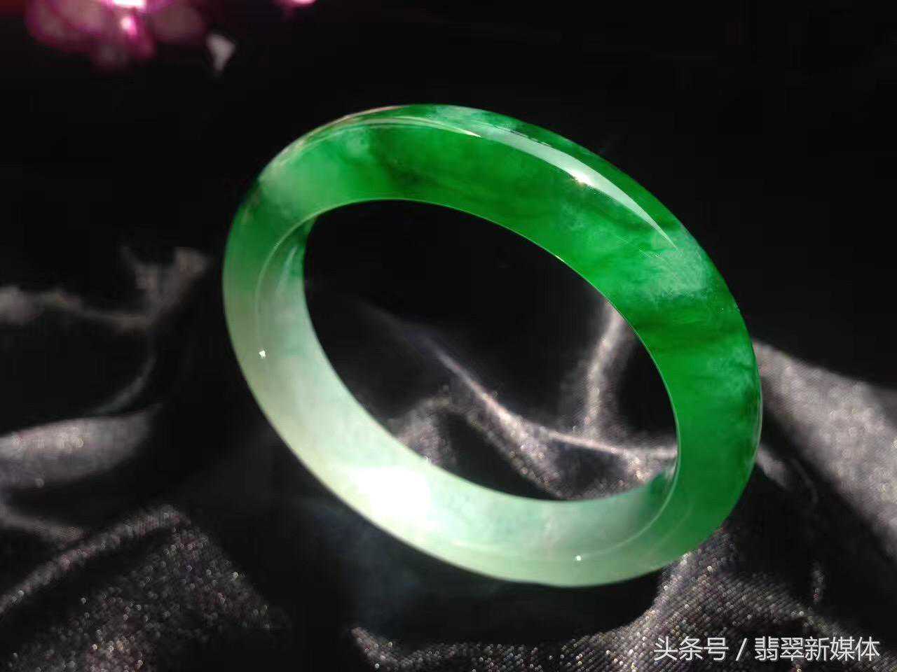 由上可知,百万级以上的翡翠手镯,种质细腻,大多是冰底或玻璃底,带上满圈或者一部分绿色几乎是标配,且色泽必须鲜亮。