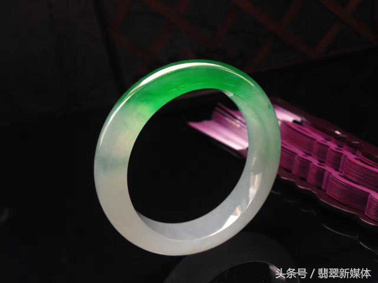 55圈口,冰底一段阳绿,质地细腻,水头好