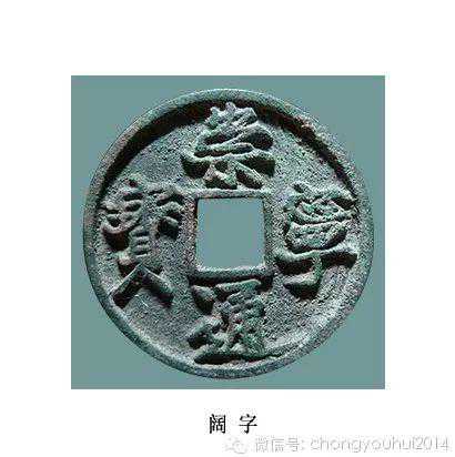 阔字,崇宁通宝中的一个主要类别,钱文书法有行书味道,字形稍大,宝字尤甚。