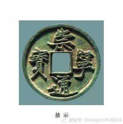 抽示,崇宁通宝版别的一个特殊命名,崇字示之第二横长,起笔似抽出顿笔强劲。