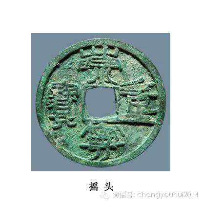 摇头,叠文的一种,钱文重叠但方向一致。