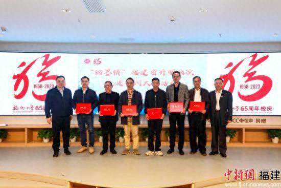 仪式上,沈斗平院长、邓春晖副院长代表福建省开明画院向福州大学捐赠了书画作品15幅,校党委陈国龙书记、黄身勇副书记代表学校接受捐赠;民进中央常委、福建省委会主委、福建省政协严可仕副主席、校党委陈国龙书记共同为开明画院艺术家颁发了捐赠证书。