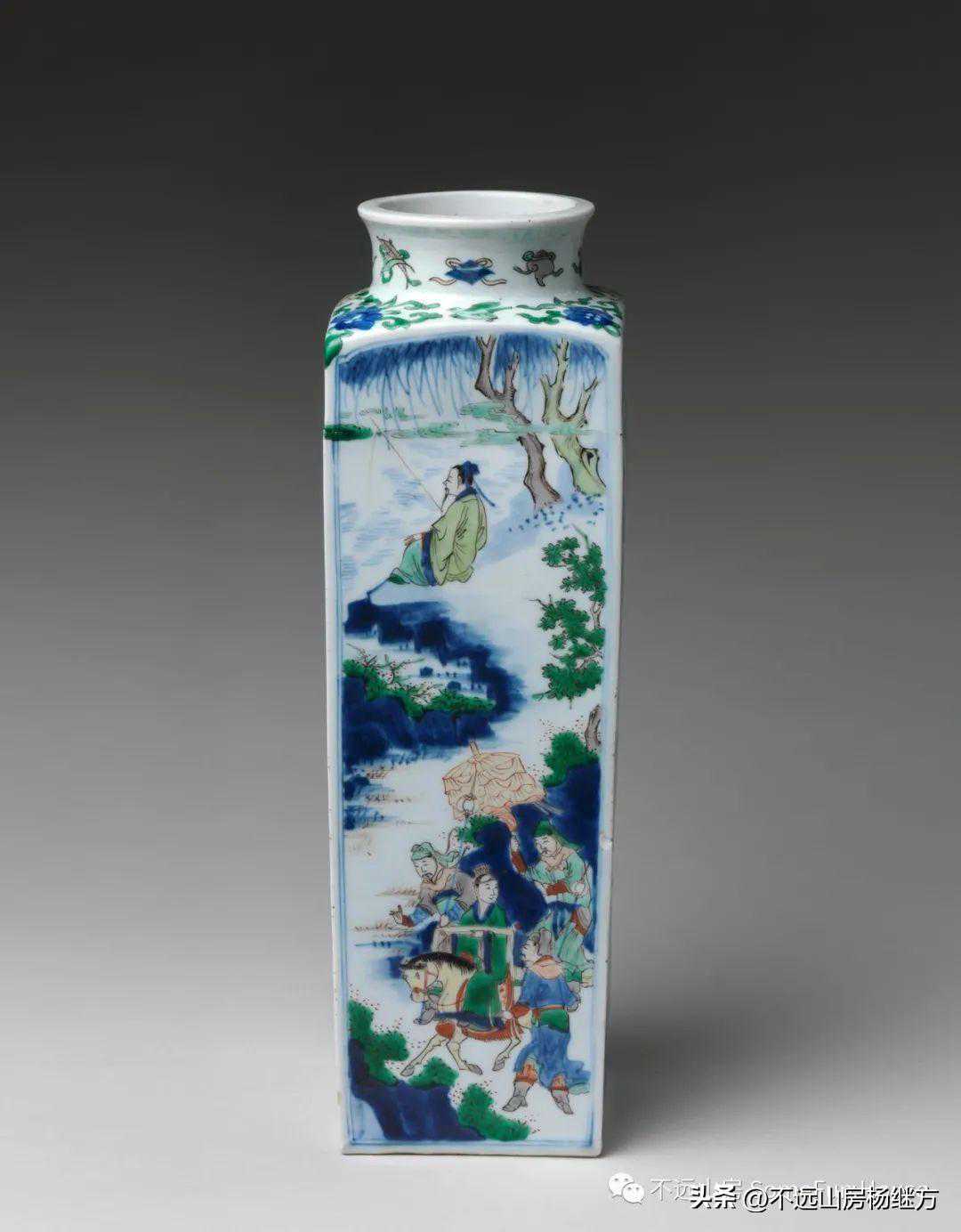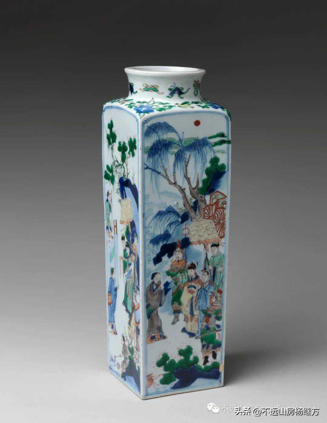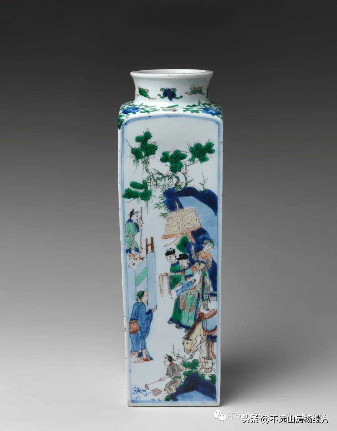 大都会艺术博物馆藏清康熙五彩人物四方瓶