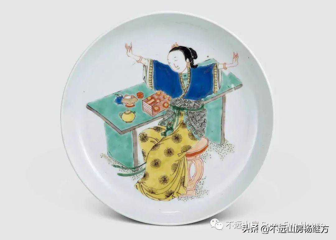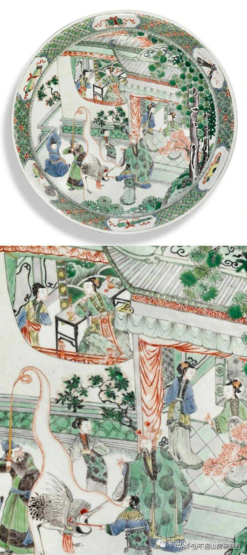 纽约苏富比2021春的康熙五彩人物图大盘,直径38厘米