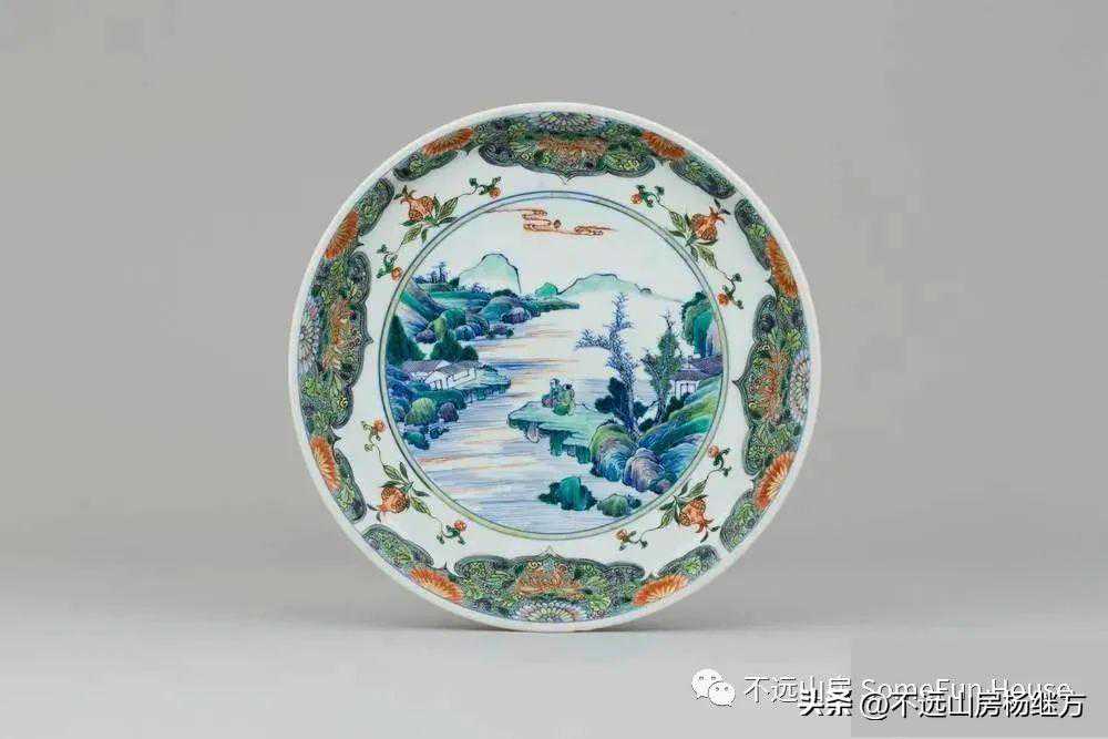 德累斯顿国家艺术收藏馆藏康熙青花五彩+斗彩山水纹饰盘