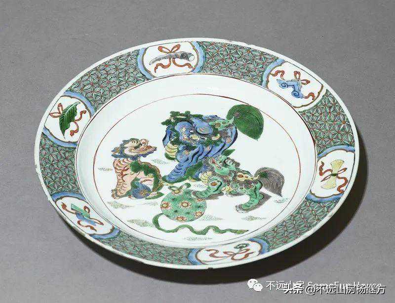 牛津阿什莫林博物馆藏清康熙五彩双狮纹盘