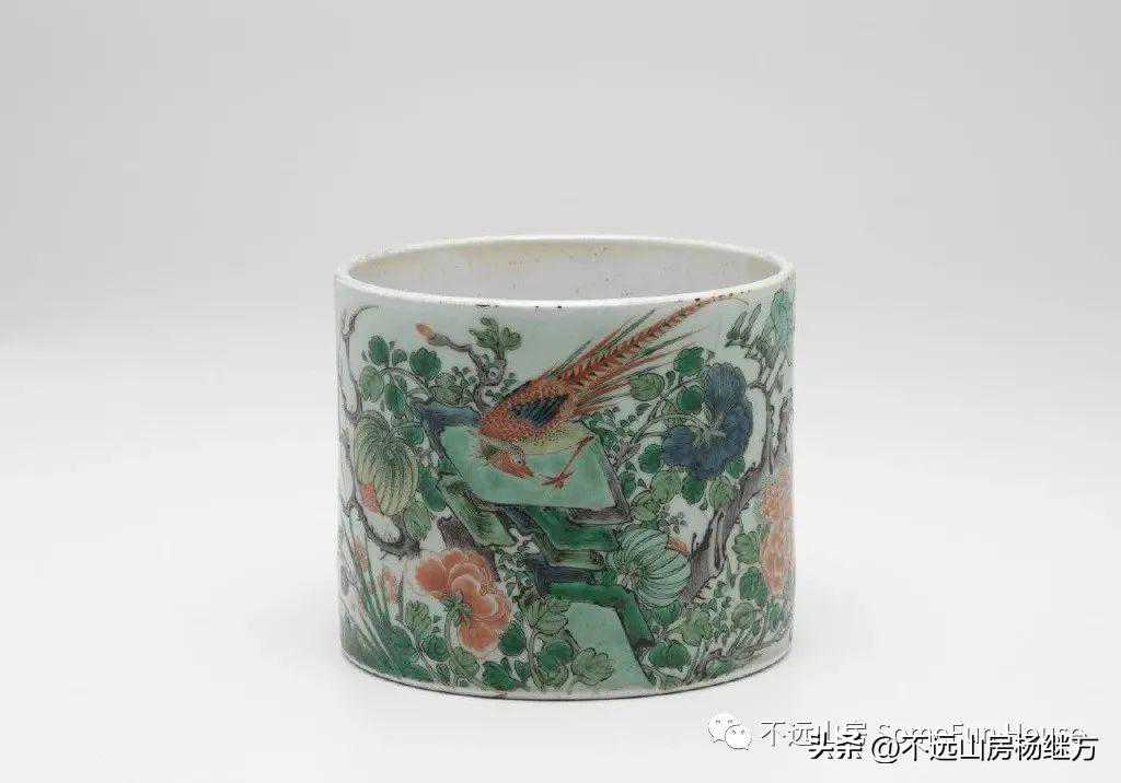 维多利亚州国立美术馆收藏的康熙五彩雉鸡牡丹图笔筒