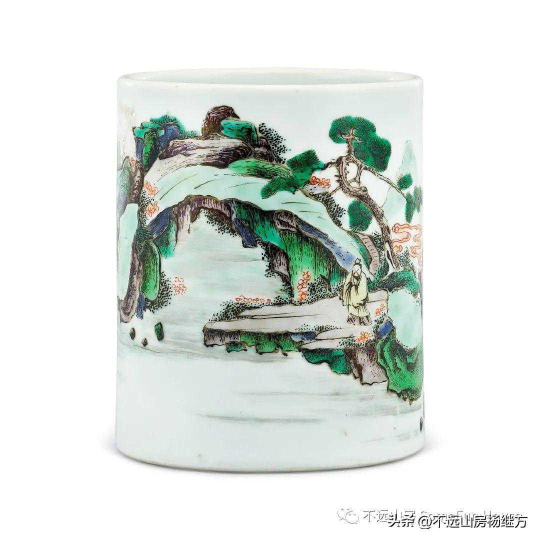 香港苏富比拍賣2021年清康熙五彩高士圖筆筒成交价69,300港元