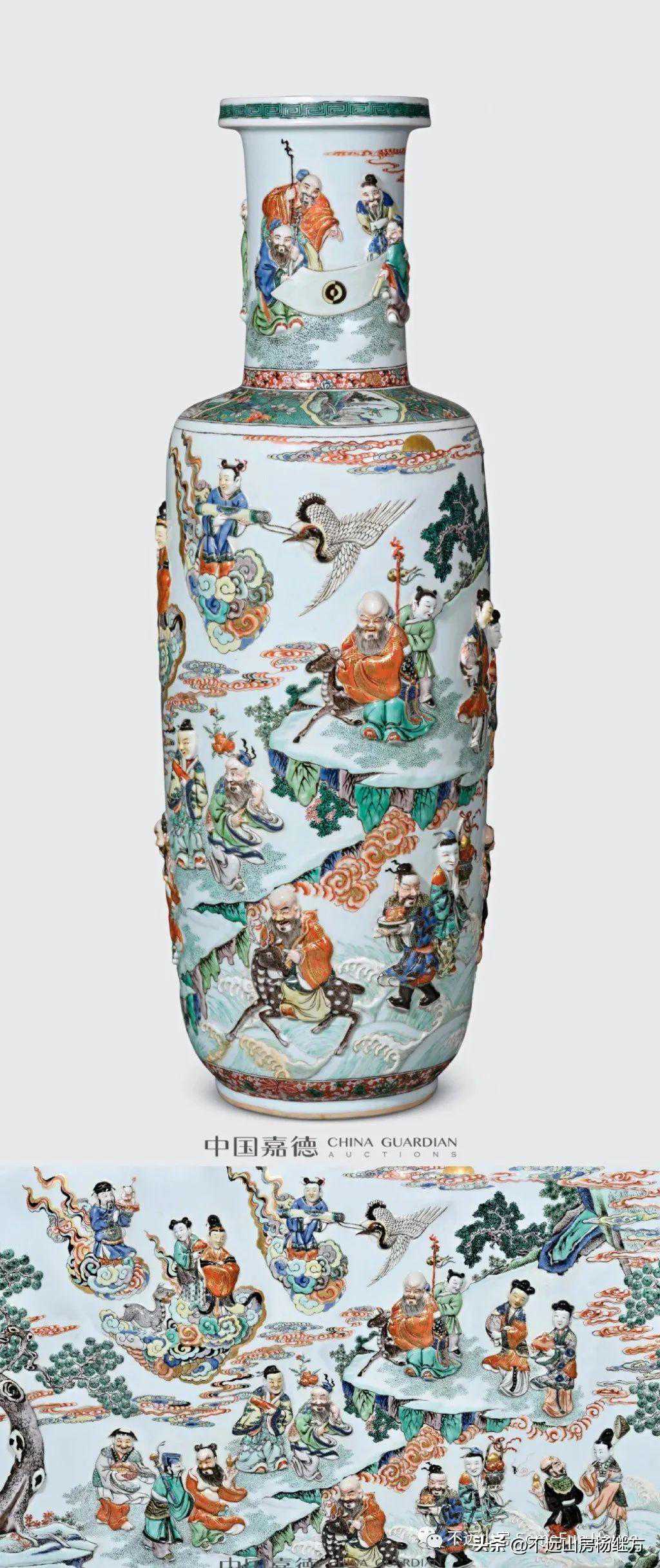 中国嘉德2021春的康熙五彩贴塑群仙祝寿图大棒槌瓶