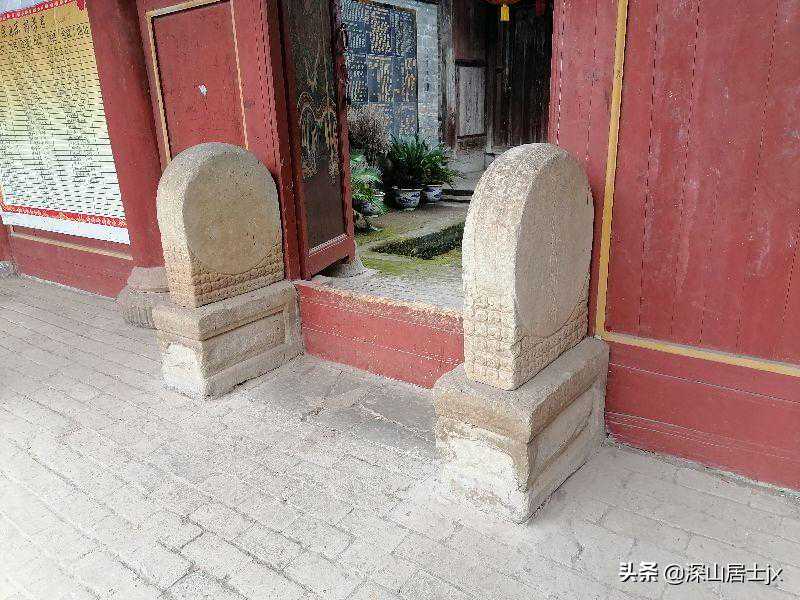 旗杆石,古时考取功名是要插旗庆祝的,其中有一个是考取解元留下的。
