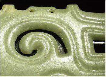 红山文化玉器放大图,到了晚期,不排除砣机的使用及加工工具的改进,打磨、抛光时出现短促、凌乱的打磨痕。