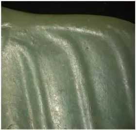 此时期打磨和抛光的特征是:表面光滑无痕或划痕粗短凌乱,逆光观察,会发现很多手工加工留下的小平面。