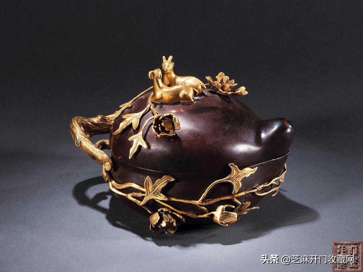 清雍正铜鎏金羊羊得意桃形盒,尺寸:长17.2厘米,估价:RMB800,000~1,200,000
