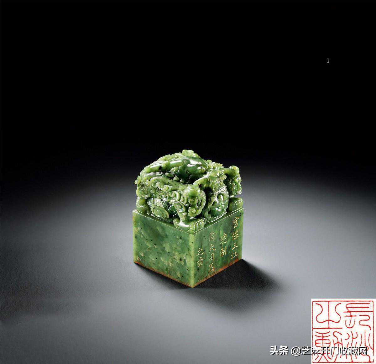 清道光陶澍碧玉龙钮“长沙之勋”印,尺寸:长4.5厘米;宽4.5厘米;高6.4厘米,成交价:RMB943,000
