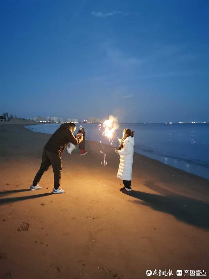 省城禁放烟花爆竹多年,多少个春节听不到鞭炮声,看不见五彩缤纷的烟花了?我记不清,更别说亲手燃放烟花爆竹啦。在海阳过年,海边不禁放烟花爆竹,腊八过后,海边就时常传来阵阵鞭炮声。除夕夜、元宵夜,人们三五成群,拿着鞭炮,来到旅游度假区海边沙滩,尽情地释放过年的欢乐。“东风夜放花千树。更吹落,星如雨。”不绝于耳的鞭炮声响彻云霄,腾空而起的礼花礼炮,将冬日寂寥的海边夜的黑暗撕裂,把海面、沙滩映照得如同白昼一般。灯光月影斑斓,鞭炮火树银花,我一家人也来到海边,踩着柔软的金沙滩,嗅着熟悉的硫磺味,痛痛快快地过了把久违了的放鞭炮瘾。