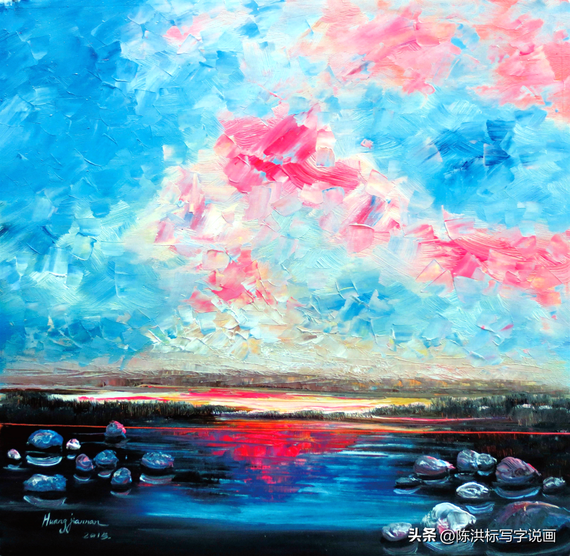▲黄建南油画作品《梦境玉湖》。