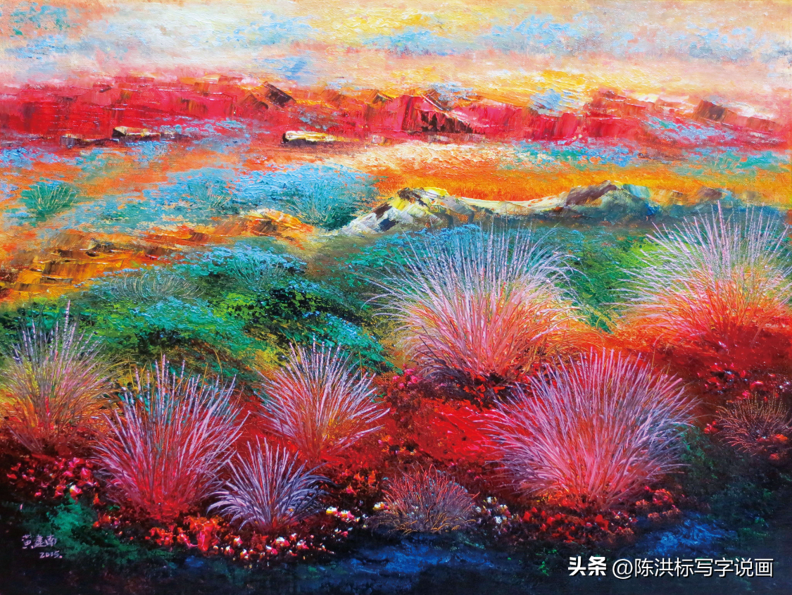 ▲黄建南油画作品《红红火火》。