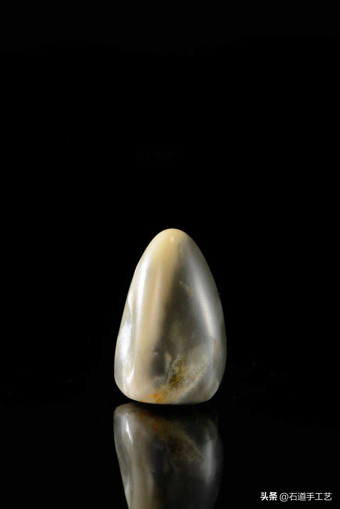 就以水坑鱼脑冻举例,旧录谓“羊脂”,极似于阗白玉,但比于阗白玉更纯、更白、更温润。色极似羊脂而更洁白,外层呈透明状,内心则处于朦胧状态。色质正,玉质温润,莹洁无类,如搏酥割肪,膏方内凝,而腻已外达。”在自然光下其石质显隐,含云、水团状纹或波浪纹,如煮熟鱼脑,不如水晶冻莹澈,石色亦非雪白。因产量极为稀少,见过鱼脑冻的人也少,故争议也最大。沈兴言。