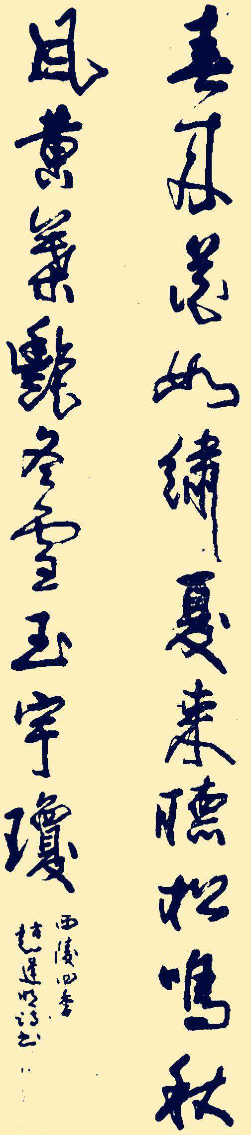 赵逢明的童年在抗日战争中度过,5位亲人惨死于日寇的屠刀,少年时代又不幸丧母,坚强不屈、桀骜不驯的性格自幼遂生。生活的辛酸磨难没有使他颓唐落拓,反而如烈火炼金,愈加刚毅真纯了。至此,那盘曲流转的线条越发苍劲雄浑而清健老辣。