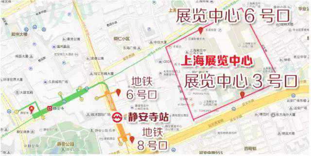 从2号线/7号线静安寺站6号口出站至展览中心6号门(展览中心北侧)约6-8分钟。从2号线/7号线静安寺站8号口出站至展览中心2-3号门(展览中心南侧)约6-8分钟。