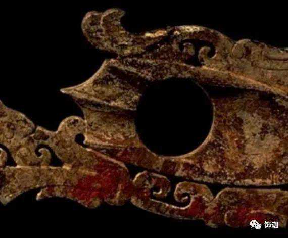 受沁的程度有重有轻,重的地方还带有棕红或黑红的块状物。沁成这种程度需要千年以上的时间。