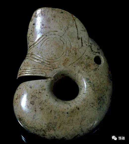 以上这几块玉制作时间在4000年至6000年前。这种玉器在刚出土的时候非常脆松。曾经有过刚出土的玉放入水中清洗时立即化掉,因此此种玉器如果有断面的话,你可以看到内部已经钙化。但如果恢复得好经擦拭有时也会出现光泽,见第二张图片。