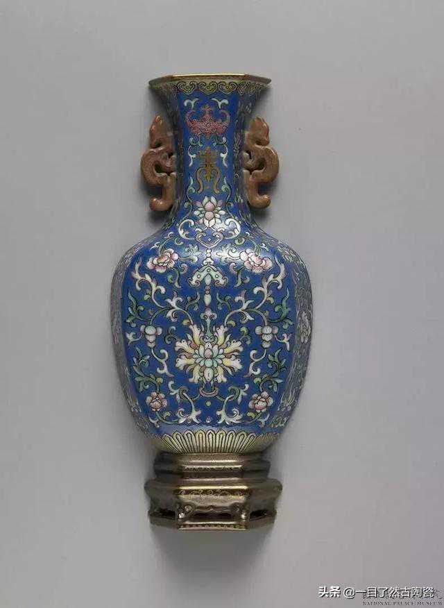 壁瓶又称轿瓶,是正常圆形或方形瓷器“半份”的造型,陈设的时候一般是挂着的,所以后壁为平板形,没有施釉等装饰,烧制时后背一般还预留有挂孔,以便将其固定在墙壁或床榻、轿子的内柱上。台北故宫的统称为“轿瓶”,但根据壁瓶的丰富用途,我还是觉得我们“壁瓶”的说法比较贴切。
