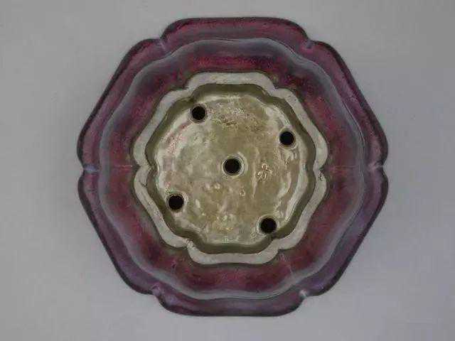 钧窑玫瑰紫釉菱花式三足花盆托北宋颜色釉钧窑