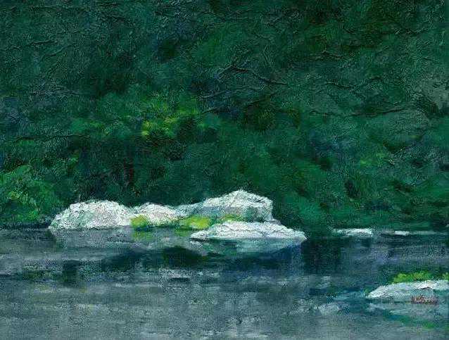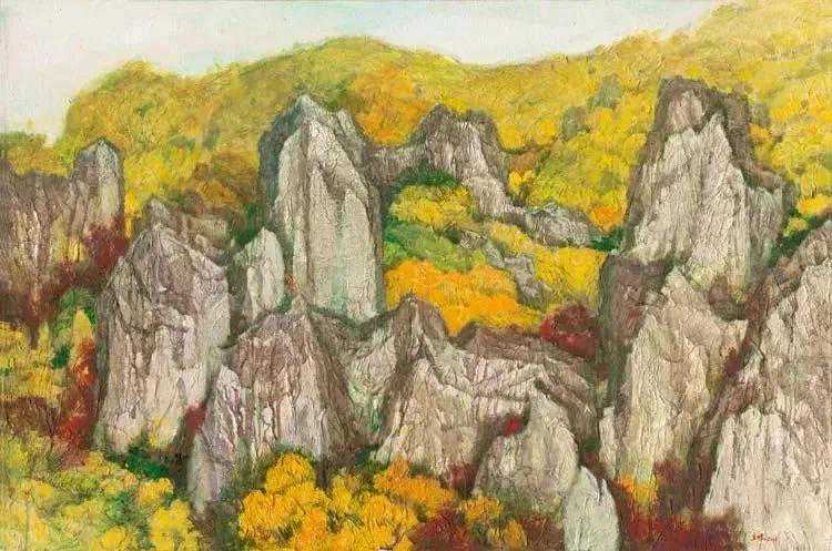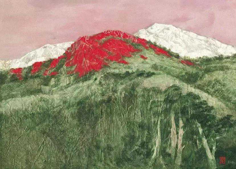 这位少年便是闻一多先生的儿子,我国著名油画家闻立鹏。往后的几十年,随着心性的成熟,闻立鹏开始回顾父亲的一生,对其父辈革命烈士的崇敬与怀念之情让他的艺术有一种鲜明的“红”,永远追求真善美。他一生都在用绘画来回应父辈的理想。面对祖国的大好河山,这片曾笼罩在战争阴影下的山河如今在他的画面中静默着,有一种感人至深的无言的力量。