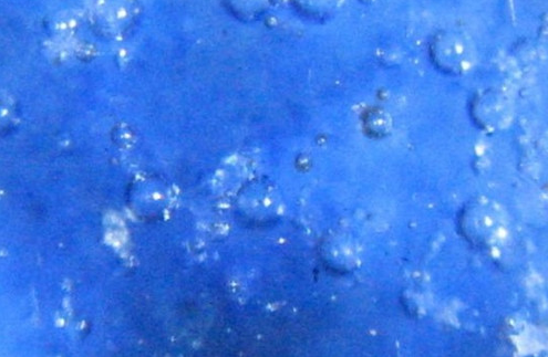 元青花气泡的特点是在密布的雾状小气泡层中散落着大气泡,绝无中等气泡过渡。