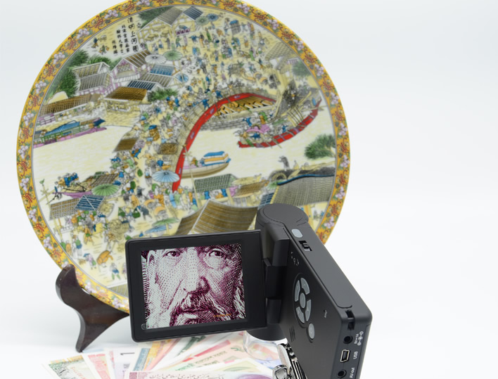 这款显微镜主要用于:收藏利器、电路板检测、矿石、手古玩、古董、邮票、古币、字画、、布料检测、皮肤,精密物件等等的放大和测量,拍照,分享,探讨的专用手持式电子放大镜、数码显微镜