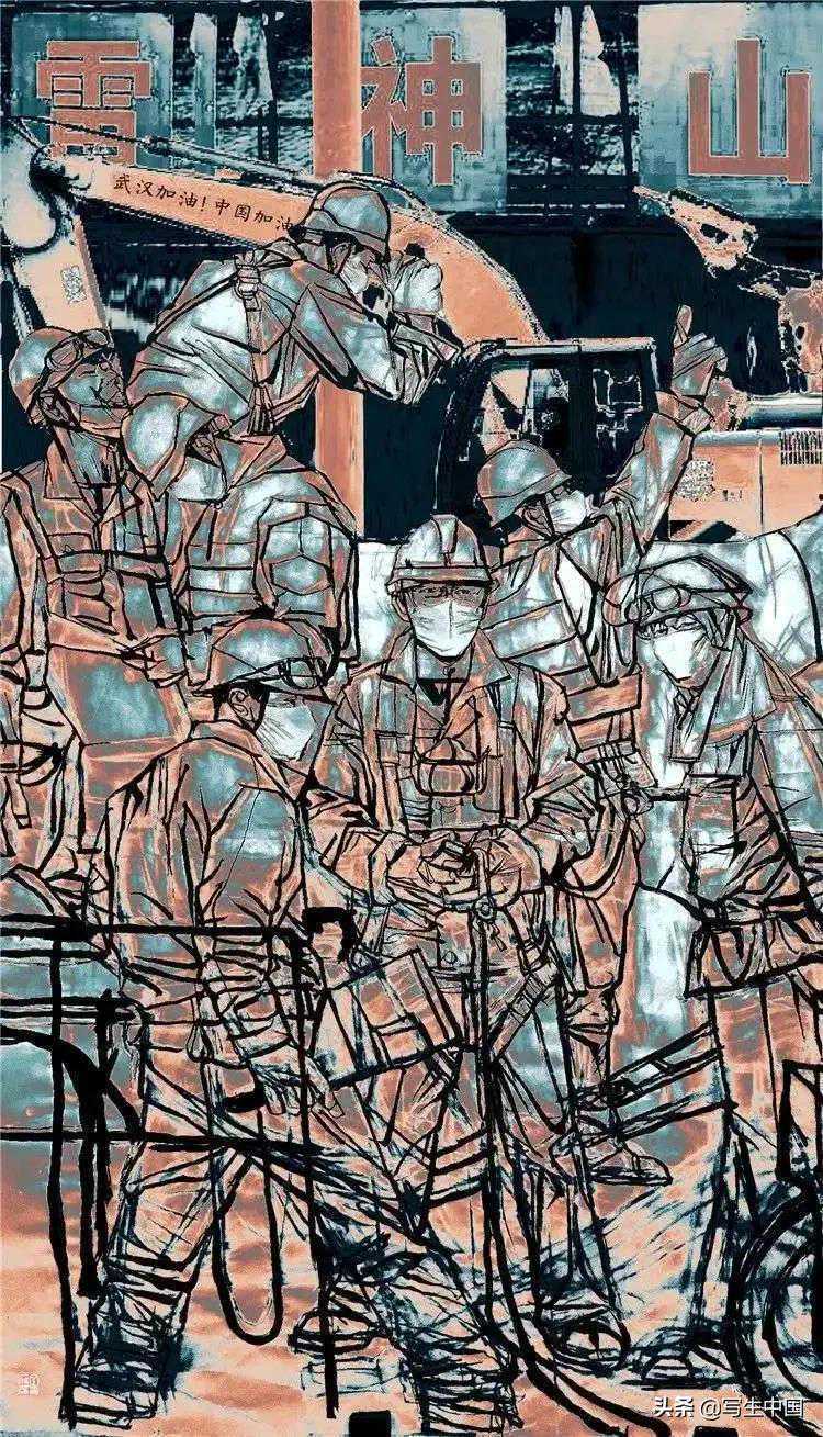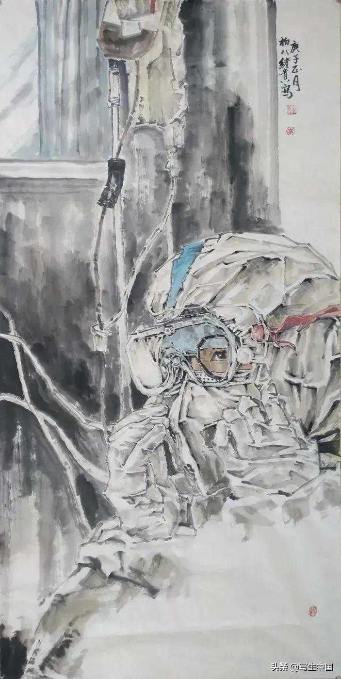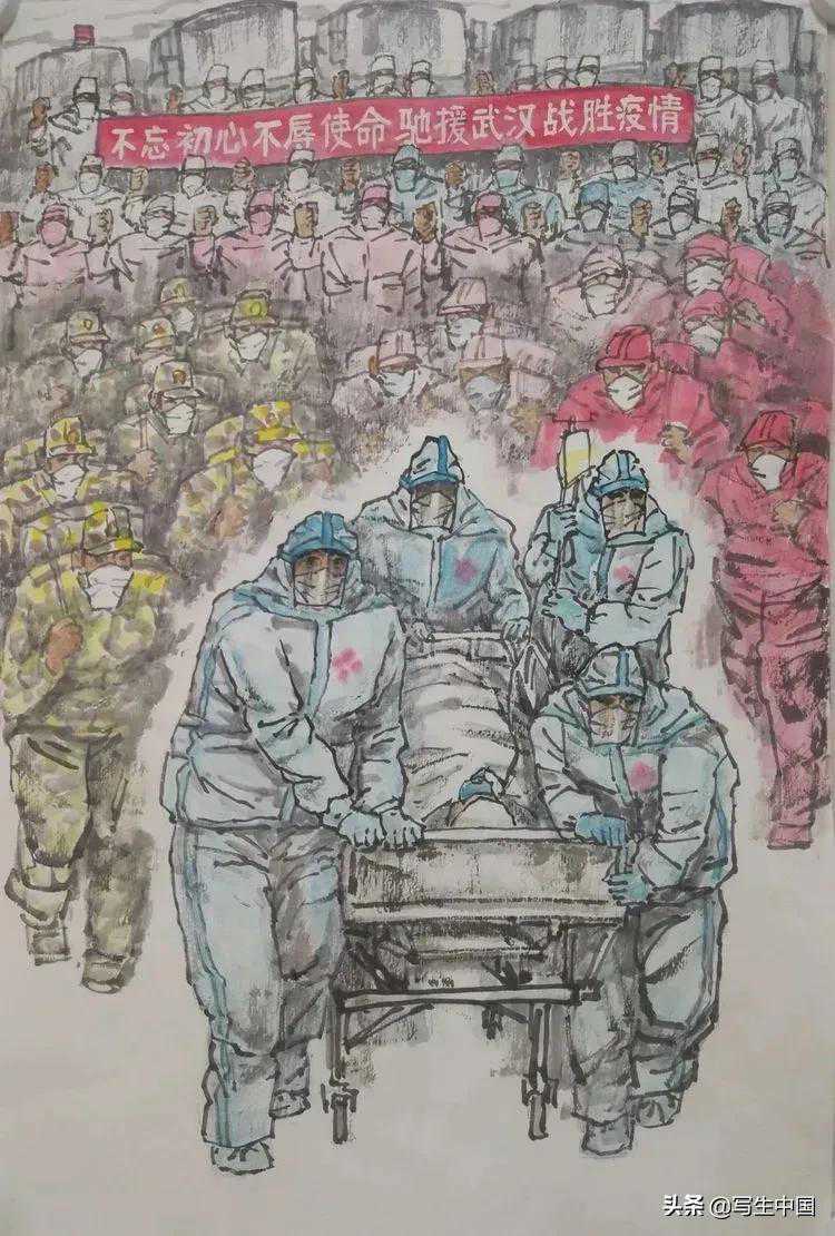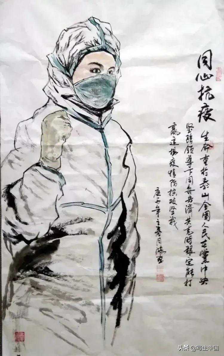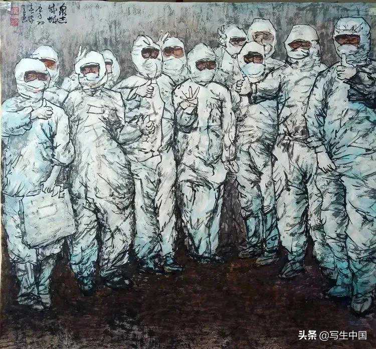 《抗疫逆行者》中国画文麒