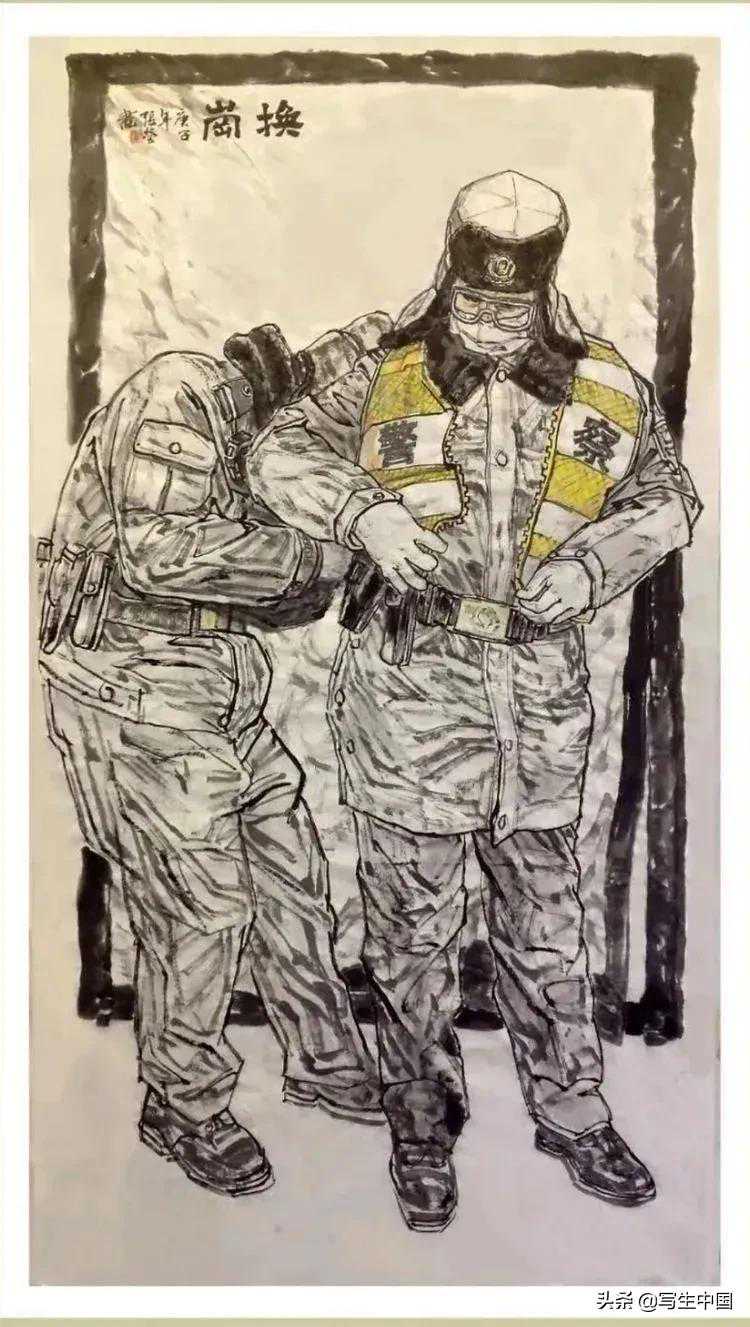 《拿画笔的抗疫战士》中国画蒋洪亮