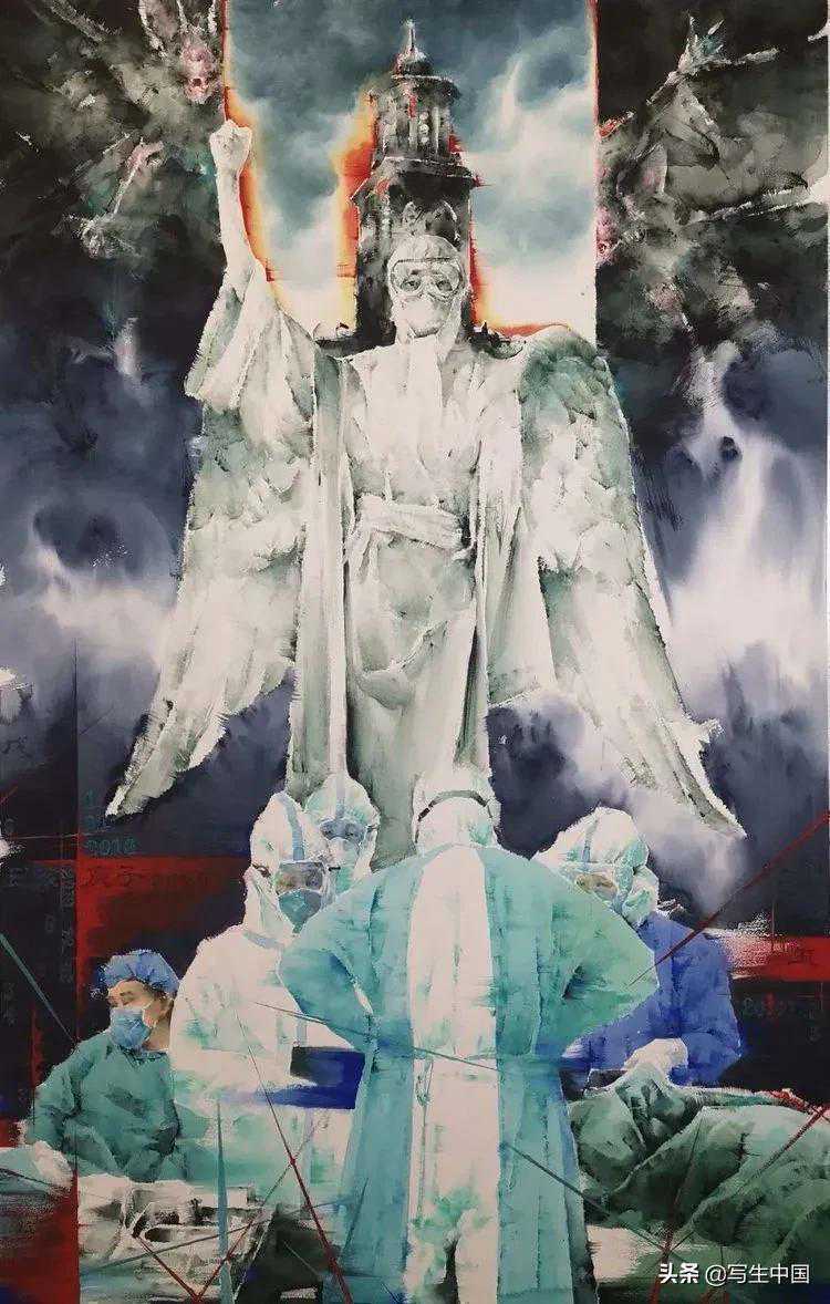 《白衣天使阻击战》国画178x137cm阎占东