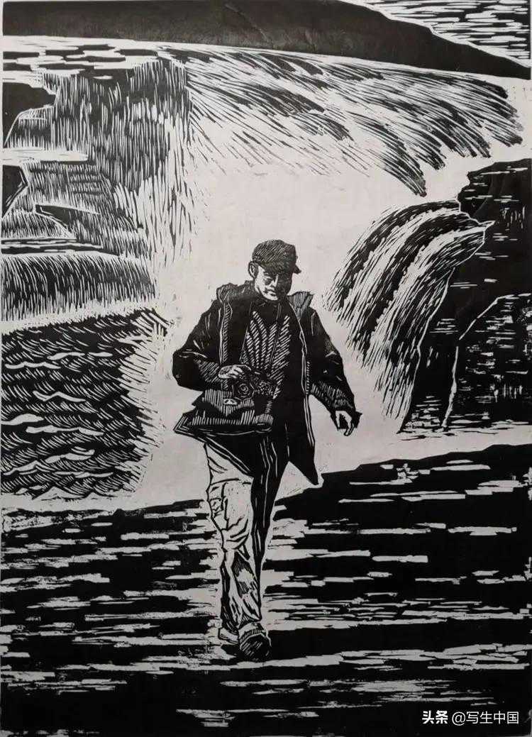 木刻版画《万里黄河一壶收》80Ⅹ120cm姚建义
