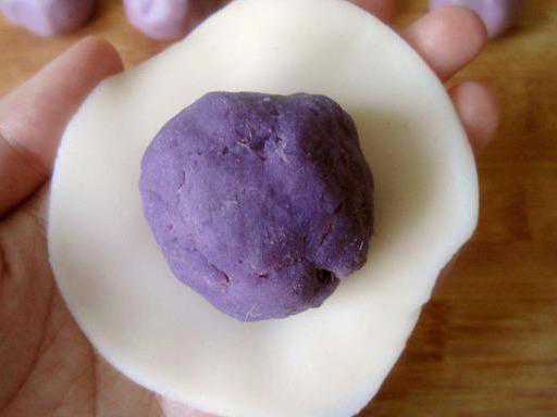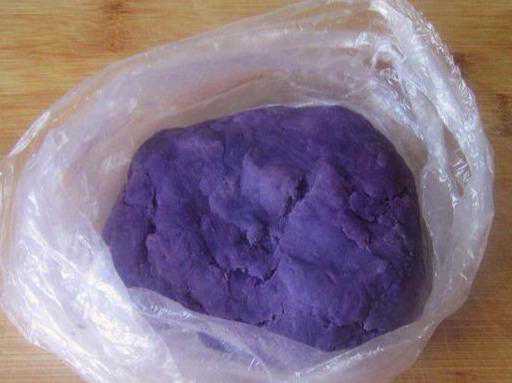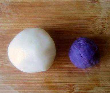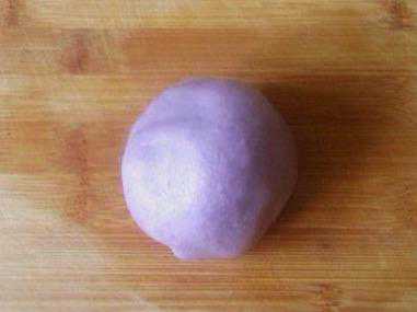 步骤3:取一小团和紫薯泥混合成紫色面团做表面装饰(面团:薯泥大约为2:1)混合好的紫色面团会比较软