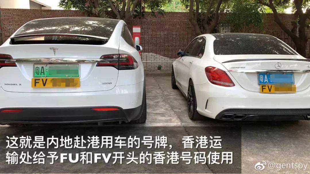 先讲内地开到香港的车,分为商务车和公务车。商务车是指广东境内的公司(纯内资)需要到香港办事的车,公务车是指广东境内的政府部门要到香港办事的车。香港运输处配给这些粤字开头的车子FU、FV号段(FU号段比较早,近年只见发FV)。另外香港本地的车也有使用这两个号段,并不是专属给粤字头用的车用(香港专属给内地用的只有驻港部队的ZG)。