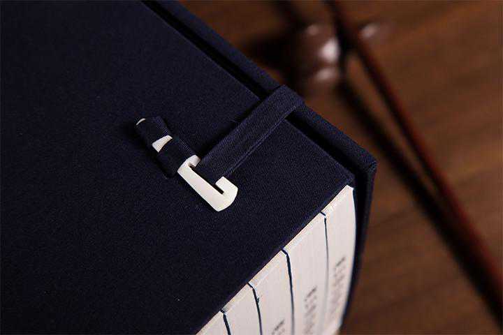 书侧压印字根,让每个卷标清晰易检索,原布扣带加上骨质别签,结实又大方。