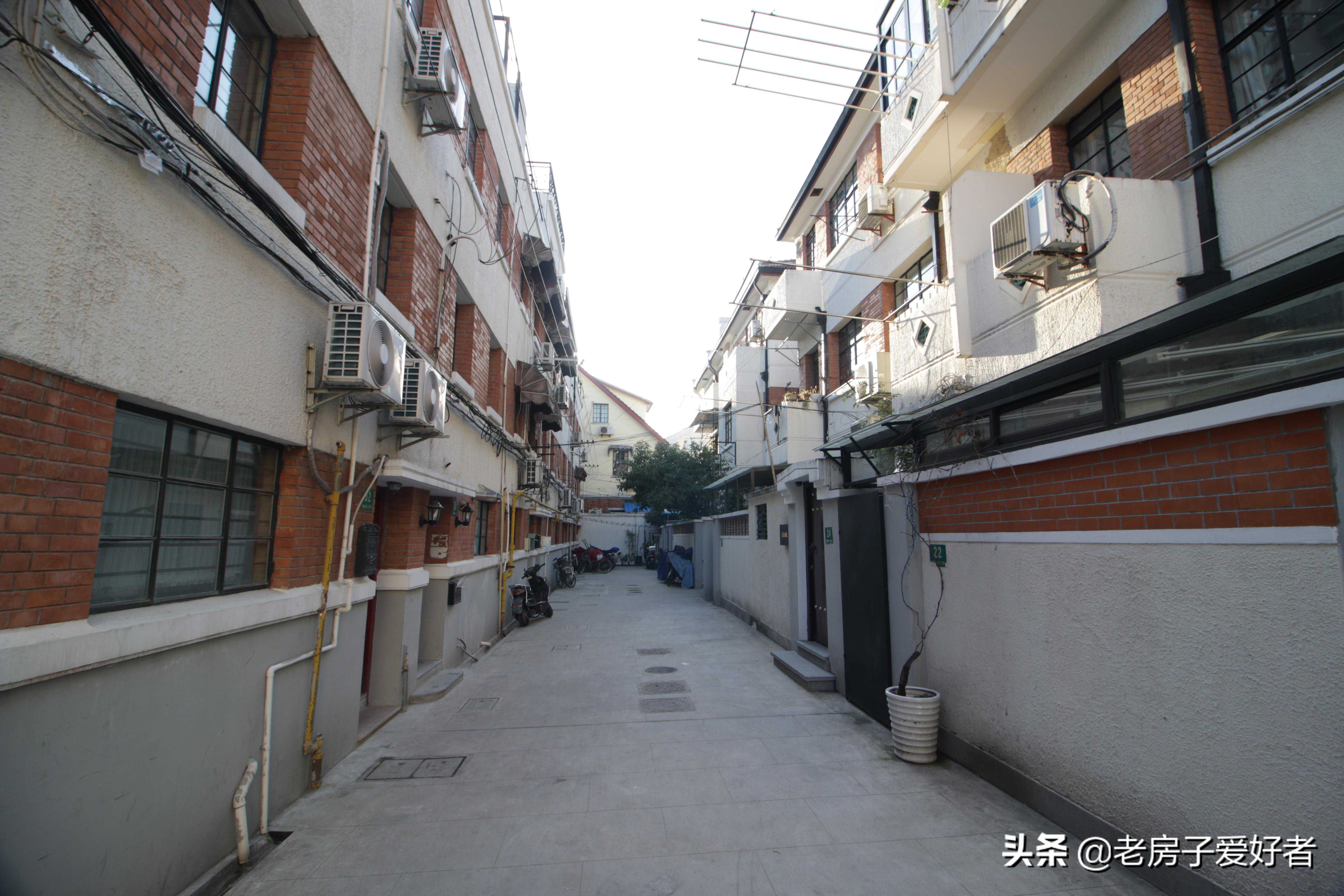 愚园新村早年弄口是有过街楼的(愚园路拓宽时拆除前排,所以没有1号),现在第一栋就是独栋建筑2号,东侧为双好,西侧为单号,后排开始为双拼联体建筑和三拼联体建筑。