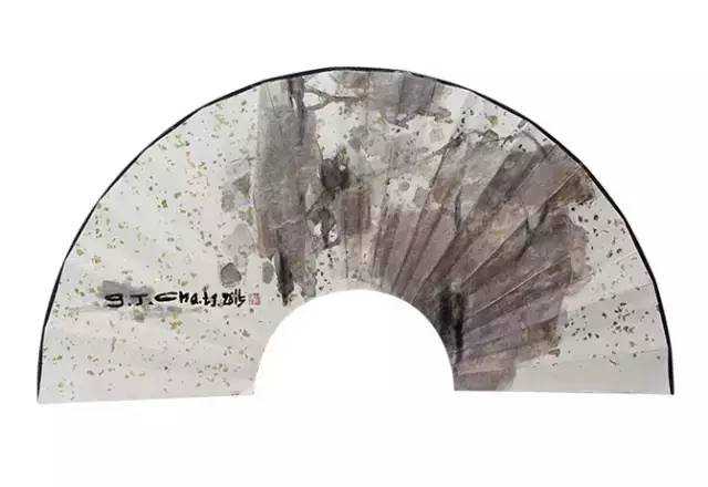自然而然抽象扇面10宣纸,综合材料外周长90cm,内周长37cm,高20cm2015