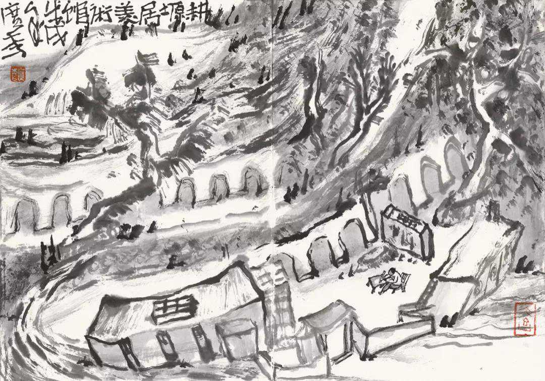 耕塬居34cm×44cm纸本水墨2018年