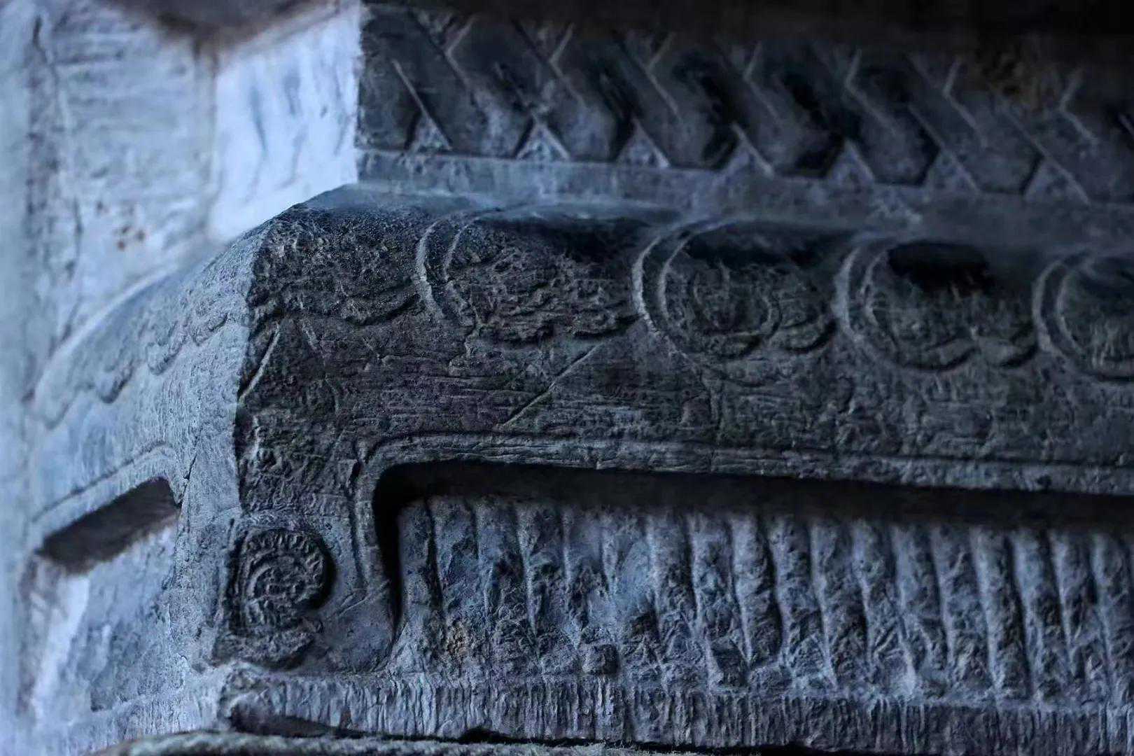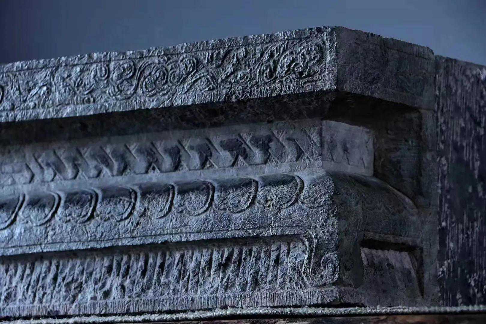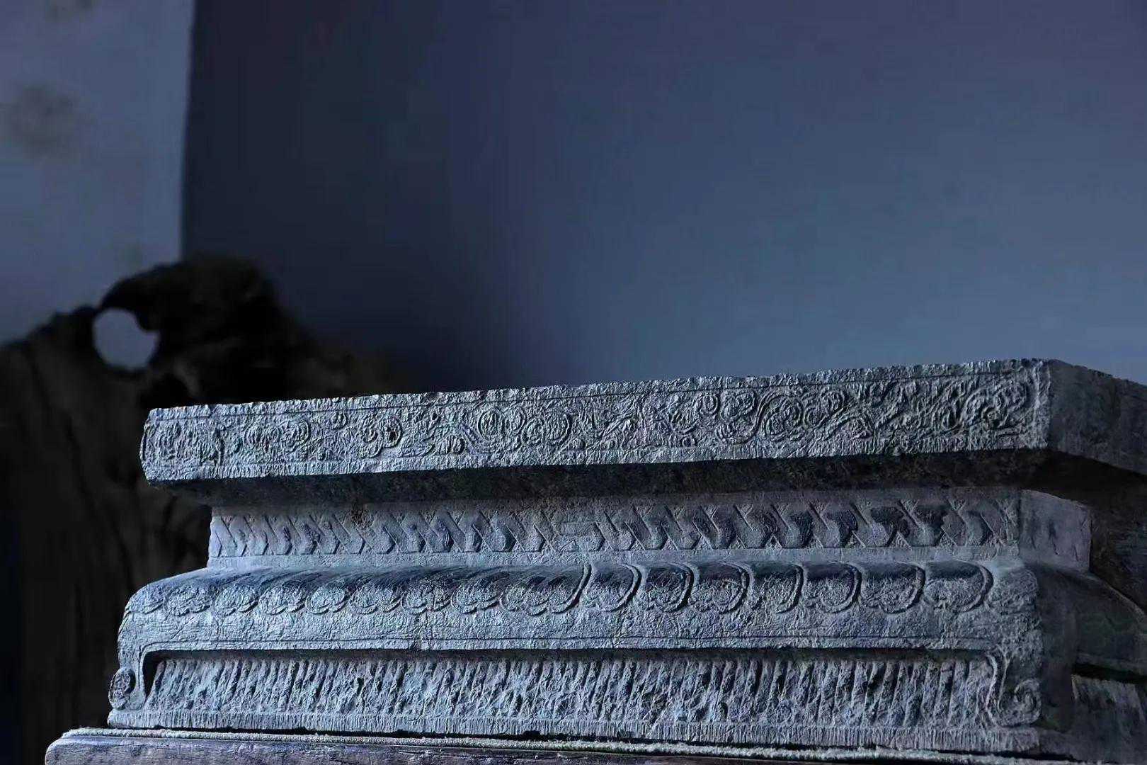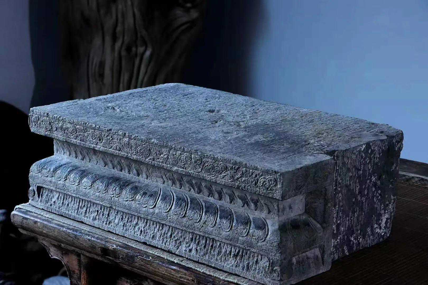 此器产地山西晋城地区是古代府邸进门佛龛底座莲花叶瓣线条流畅自然刻工精湛祥云飘飞棱型纹饰符号极具禅意空间雅室陈设彰显大雅极具收藏价值