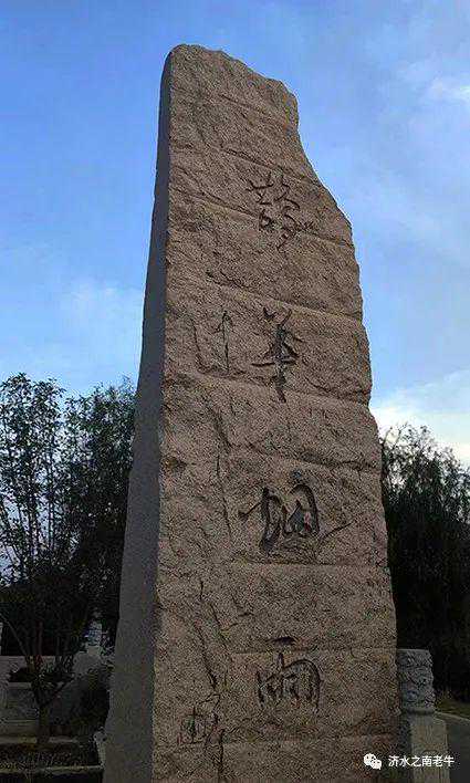 鹊山脚下由济南书法家魏启厚题写的“鹊华烟雨”石碑(摄影牛国栋)